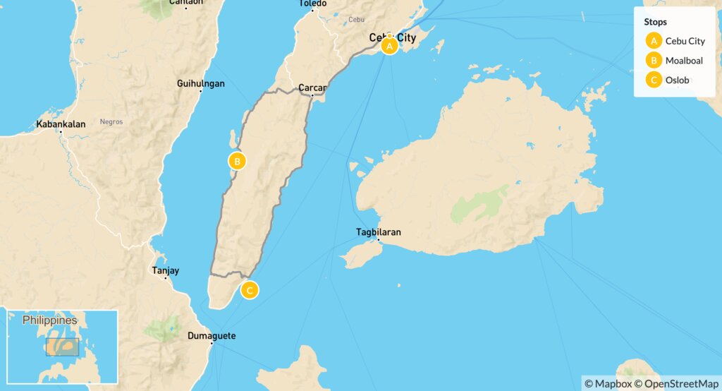 Map of Diving & Snorkeling in the Philippines: Moalboal & Oslob – 7 Days