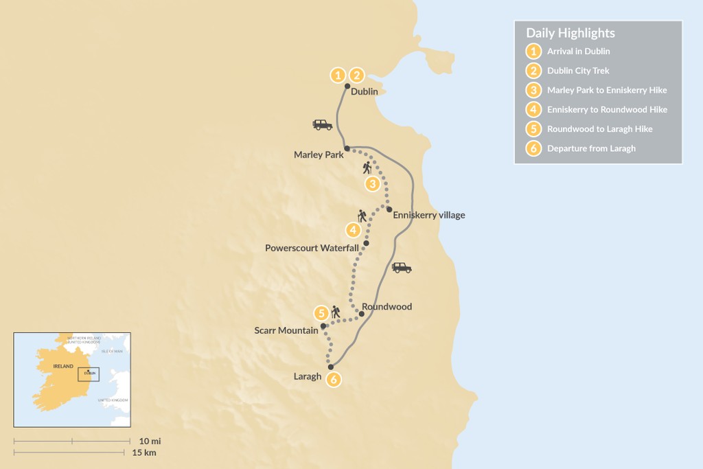 Map of Dublin City & Wicklow Way Walk – 6 Days