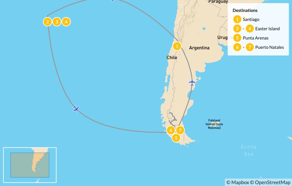 Map of Easter Island & Torres del Paine Adventure – 8 Days