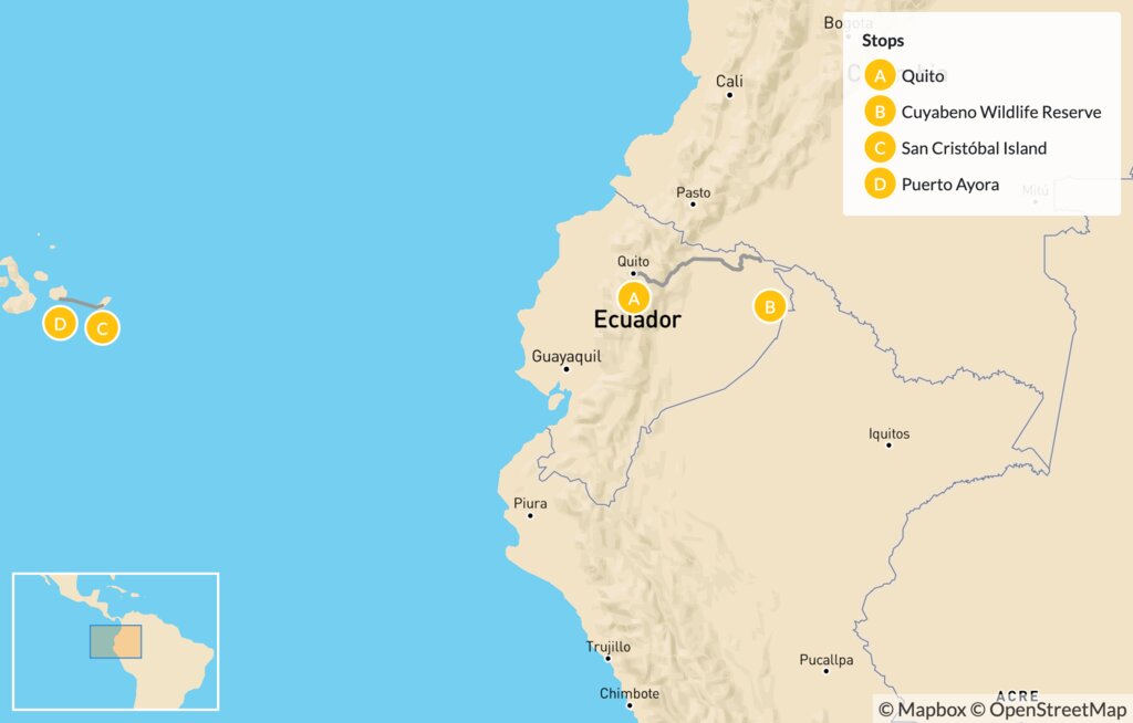 Map of Ecuador Adventure in the Amazon Rainforest & Galápagos Islands – 13 Days