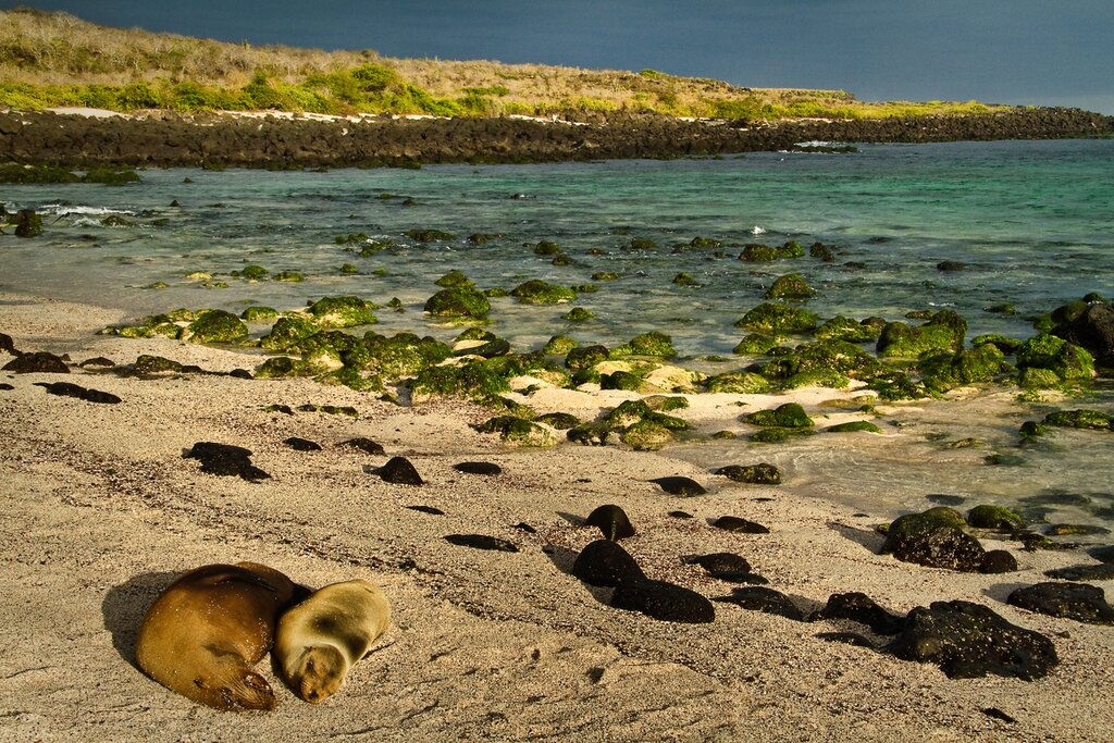 After lunch, you will be taken on a small boat to visit exotic places along the bay of Santa Cruz, including a small islet called La Lobería, which, like San Cristóbal, is named after its sea lion community. You can snorkel around sea lions and tropical fish who display a dazzling show beneath the surface. Afterward, it’s on to the Shark Channel, where you may spot harmless white-tip sharks and blue-footed boobies. You’ll also come upon the Canal del Amor, where there are sea turtles and many different species of tropical fish.