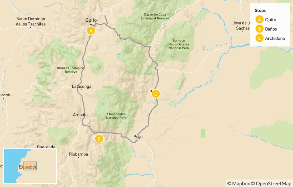 Map of Ecuador Adventure in the Andes & Amazon – 7 Days