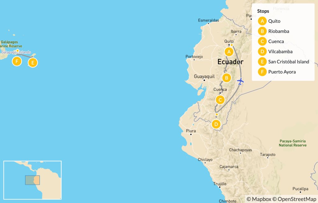 Map of Ecuador Expedition: From Quito to the Galápagos Islands – 13 Days