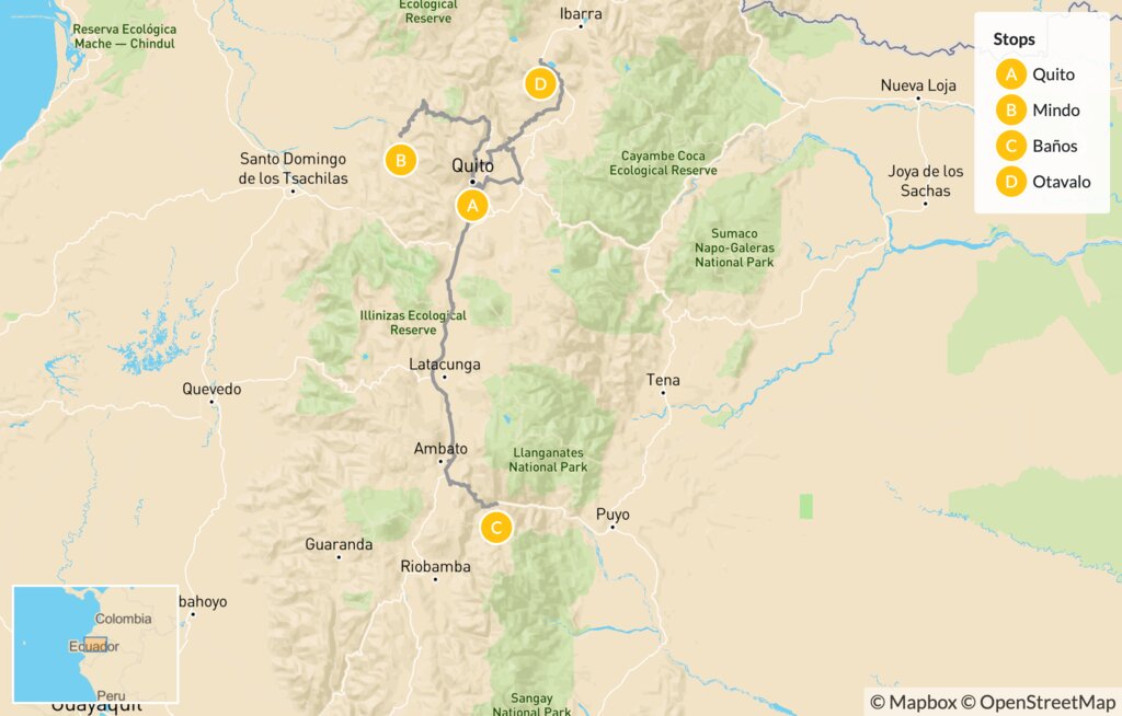 Map of Ecuador Exploration: Quito & Central Andes – 12 Days