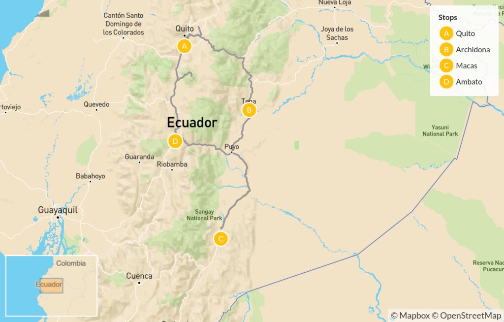 Map of Ecuador Glamping Adventure: Cities, Jungles & Highlands – 9 Days