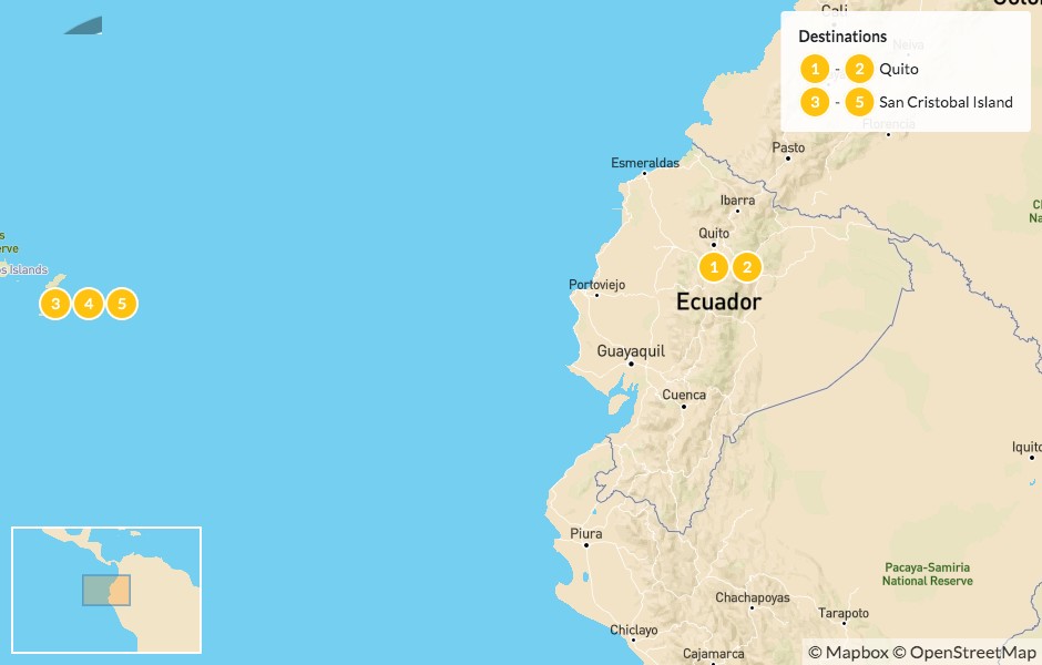 Map of Ecuador Highlights: Quito & the Galapagos – 6 Days