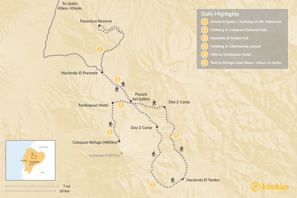 Map of Ecuador Volcano Trek – 6 Days