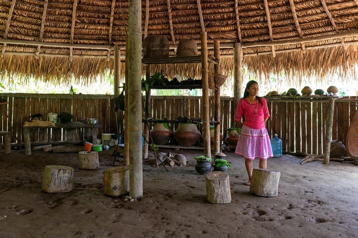 Today you will make your way back to the Río Napo and take a motorized canoe ride to the clay licks, one of the most captivating displays in the bird-watching world. Hundreds of parrots and parakeets flock here to eat the mineral-rich soil, an important part of their diet. Binoculars are essential to capture the moment in all of its splendor. After the clay licks, you’ll have the chance to meet some of Yasuní’s local residents, as Indigenous Amazonian Kichua women welcome you to their community center to share stories about their way of life in the rainforest.