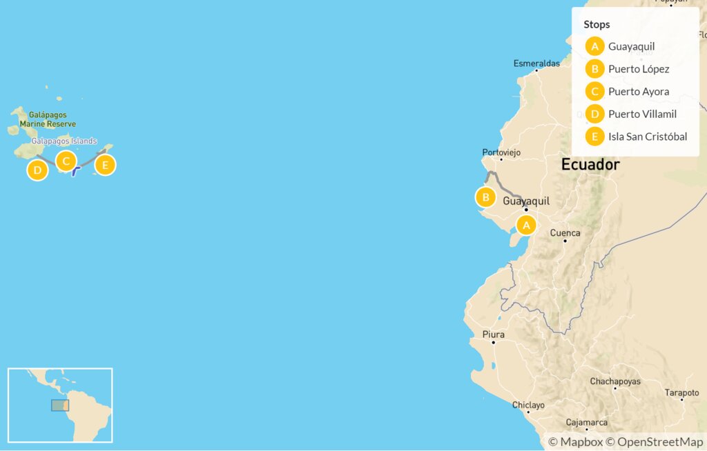Map of Ecuador Wildlife Journey: Guayaquil, Puerto López & the Galápagos Islands – 13 Days