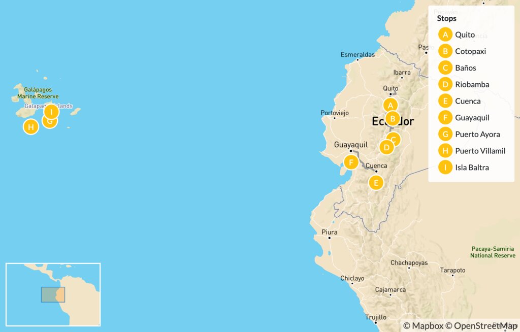 Map of Ecuadorian Andes & the Galápagos Islands – 15 Days