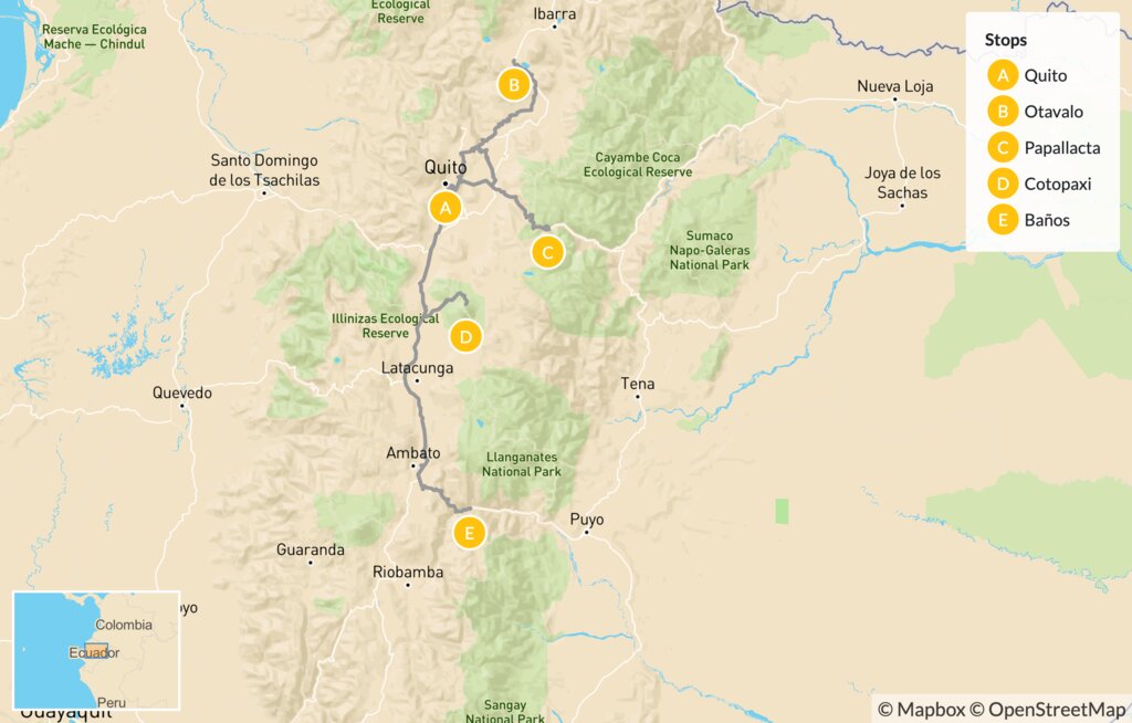 Map of Ecuador’s Natural Wonders & Historic Haciendas – 8 Days
