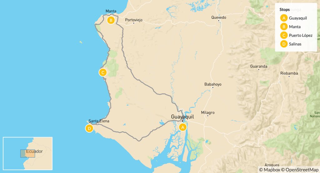 Map of Ecuador’s Pacific Coast for Families: Culture, Nature & Beaches – 14 Days