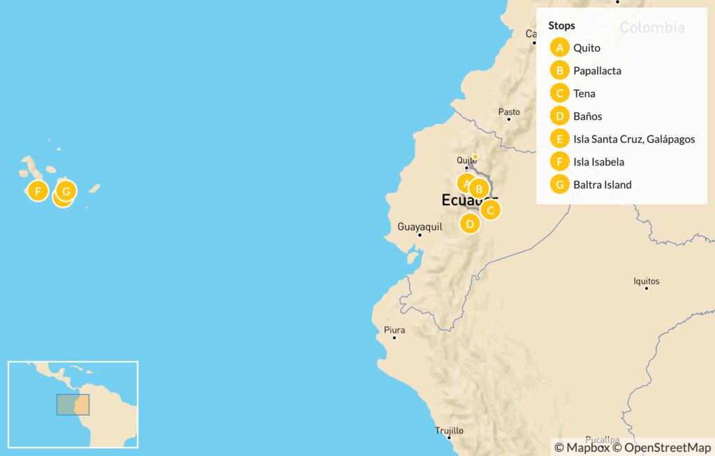 Map of Ecuador’s Volcanoes, Amazon Rainforest & Galápagos Islands – 13 Days
