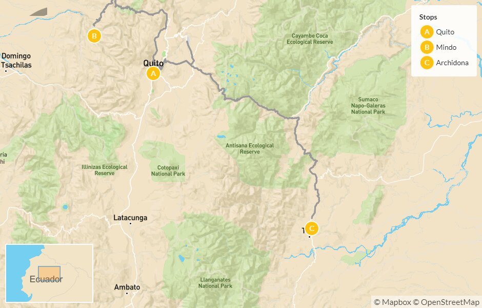 Map of Ecuador’s Wildlife, Volcanoes & Rainforests – 12 Days