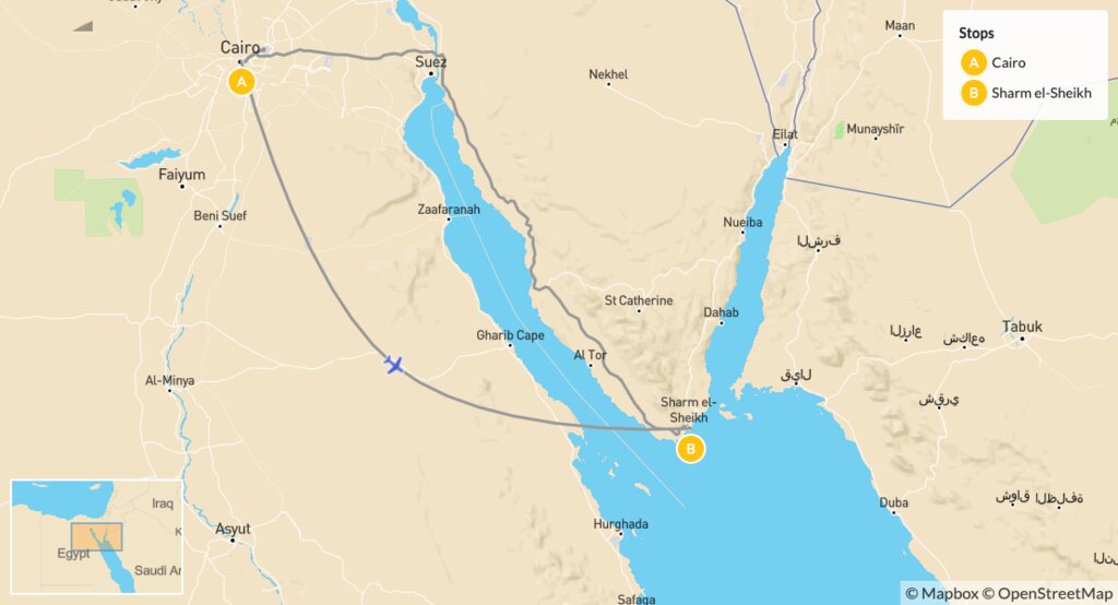 Map of Egypt City, Desert & Coast Adventure: Cairo & Sharm el-Sheikh – 6 Days