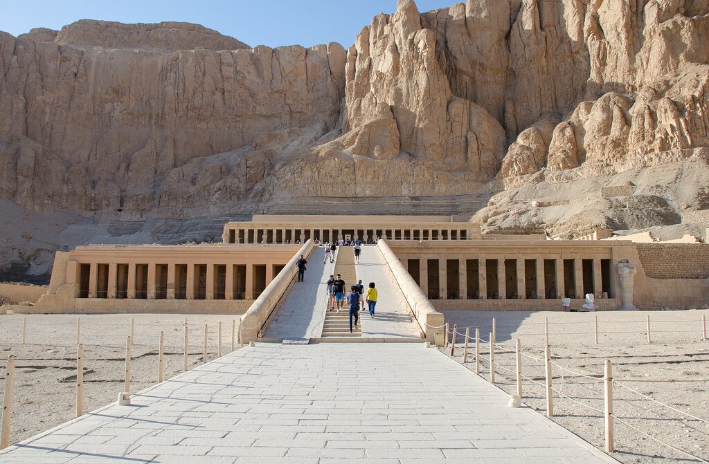 Visit the Valley of the Kings today to see rock-cut tombs for kings and powerful nobles (including Tutankhamun) dating from the 16th to 11th century BCE. Stop at the Colossi of Memnon to see the ruins of Amenhotep’s memorial temple. What remains are two imposing statues of Pharaoh Amenhotep III that were erected to guard the temple’s entrance. Then head to Hatshepsut Temple. The memorial of Queen Hatshepsut is the focal point of Deir el-Bahri, a complex of mortuary temples and tombs.