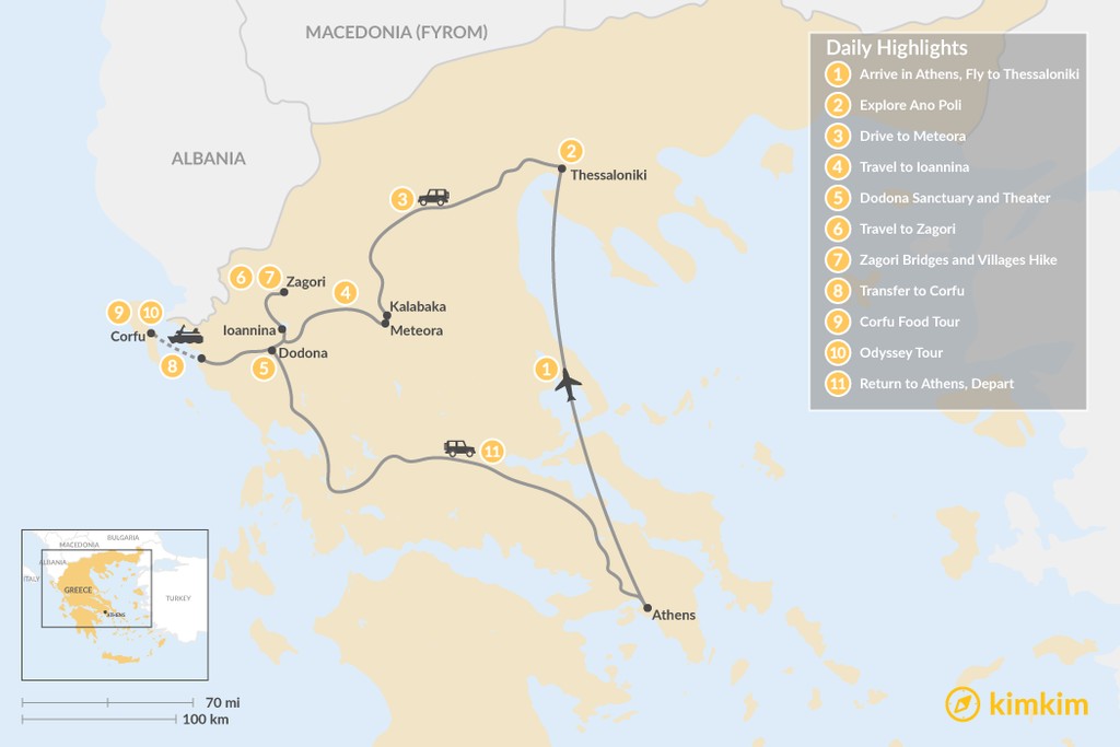 Map of Enchanting Northern Greece and Corfu – 11 Days