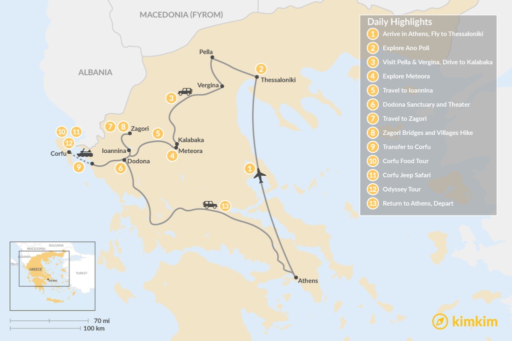 Map of Enchanting Northern Greece and Corfu – 13 Days