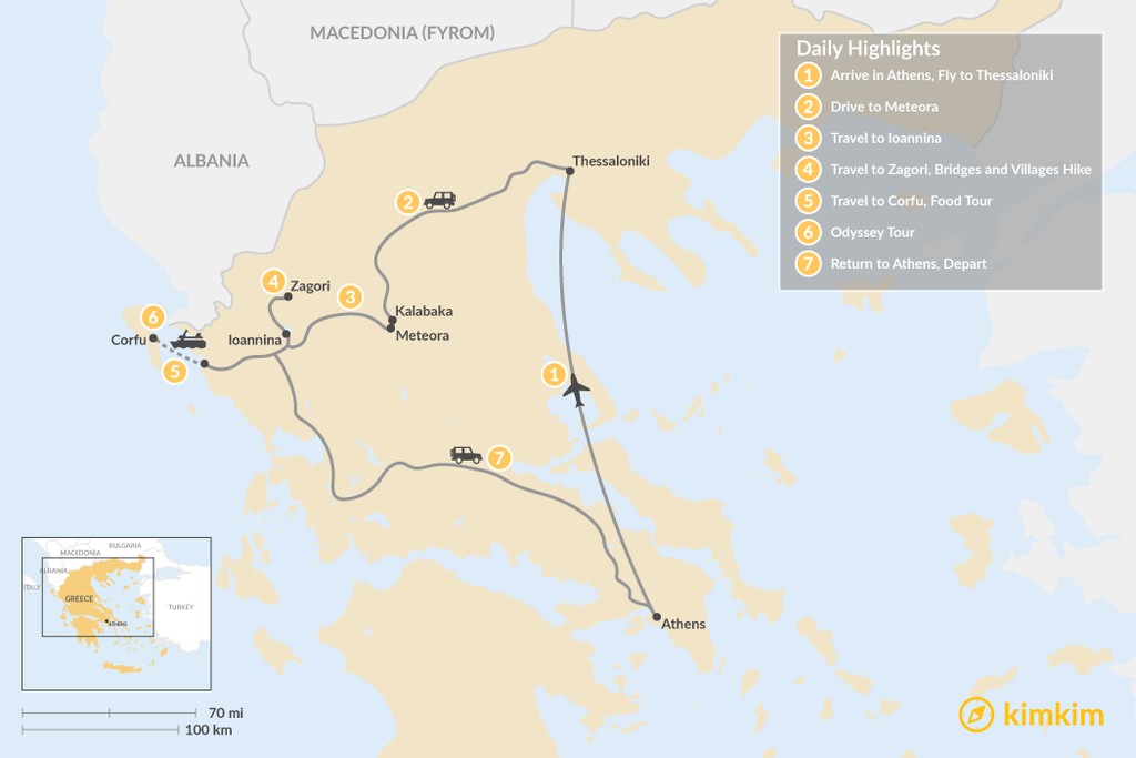 Map of Enchanting Northern Greece and Corfu – 7 Days
