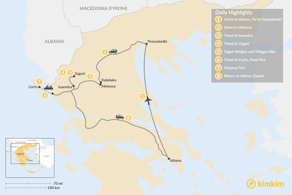 Map of Enchanting Northern Greece and Corfu – 8 Days