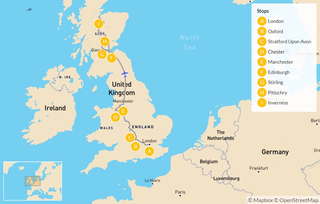 Map of England & Scotland for Foodies: London to the Highlands via Gourmet Tours & Whisky Tastings – 12 Days