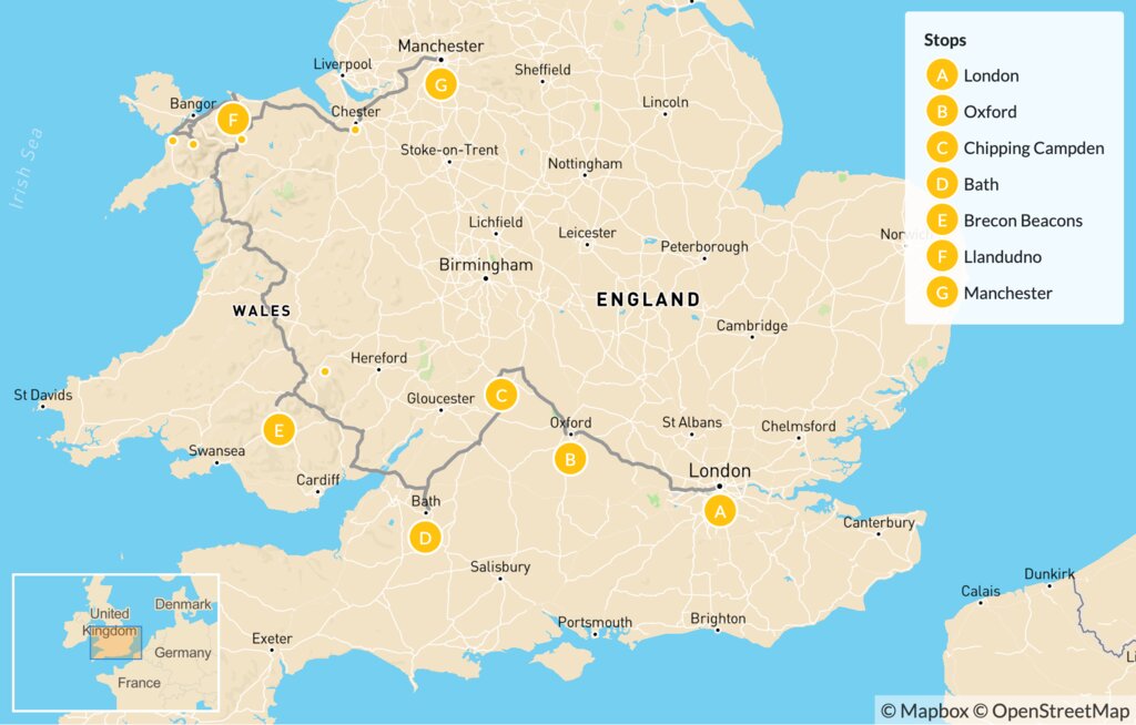 Map of England & Wales Road Trip: History, Culture & the Great Outdoors – 14 Days