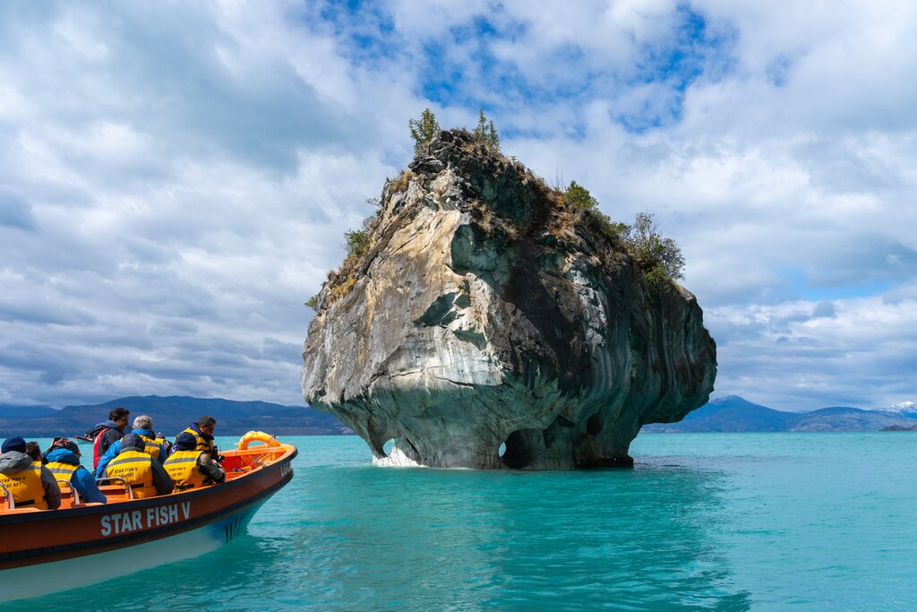 Hit the road again in the morning on a four-hour scenic transfer south to Puerto Río Tranquilo. This remote town is located on the north shore of Lago General Carrera, Chile’s largest lake, which straddles the border with Argentina. This vast glacial lake is renowned for its vivid turquoise waters, picturesque surroundings, and the distinctive marble caves along its shoreline.