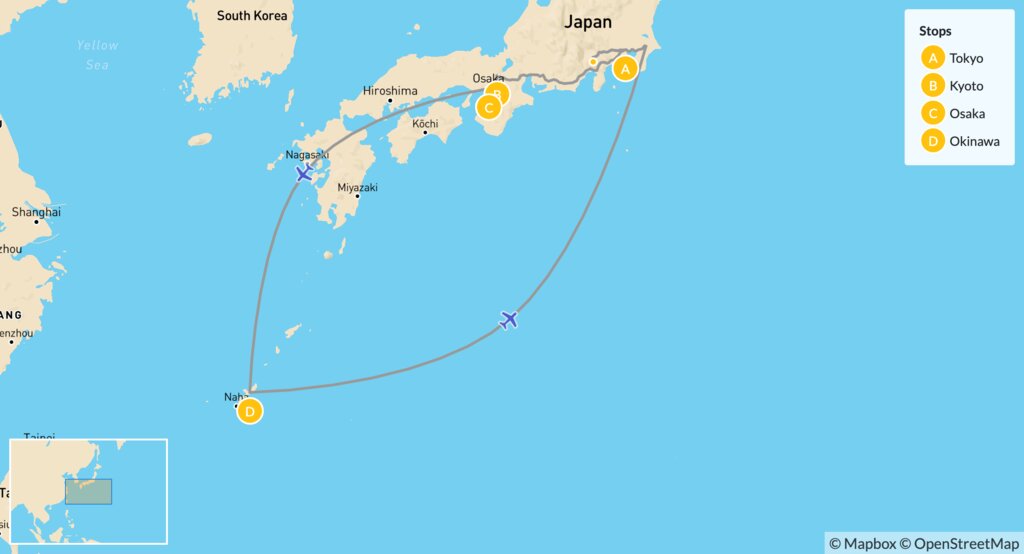 Map of Epic Family Tour Across Japan: Futuristic Fun, Culture, History & Beaches – 14 Days