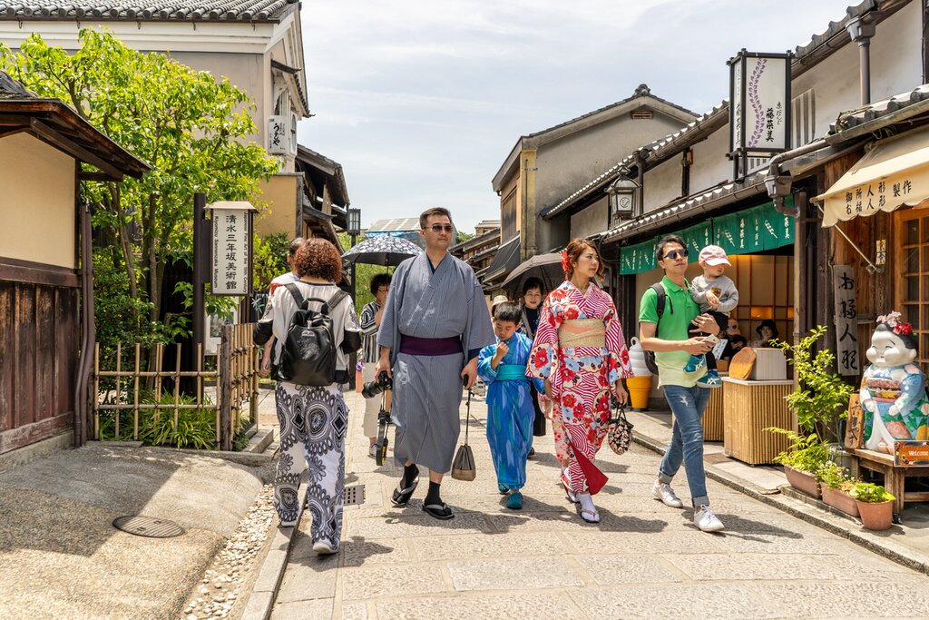 Gather up the family and make your way to the train station to depart for Kyoto, a cultural powerhouse known for its historical traditions, temples, gardens, and palaces. You’ll be traveling on a Shinkansen bullet train, a quick two-hour ride. Once you’ve checked in at your Kyoto hotel, meet your guide and head to Kyoto’s captivating Gion district for a traditional kimono tea ceremony.