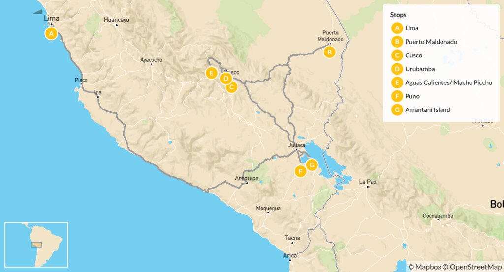 Map of Epic Family Tour of Peru: Wildlife, Culture & Ancient Ruins – 14 Days