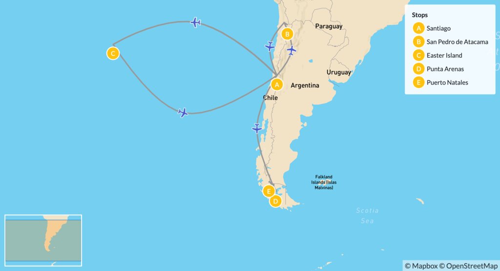 Map of Epic Family Trip to Chile: Atacama Desert, Easter Island & Patagonia – 14 Days