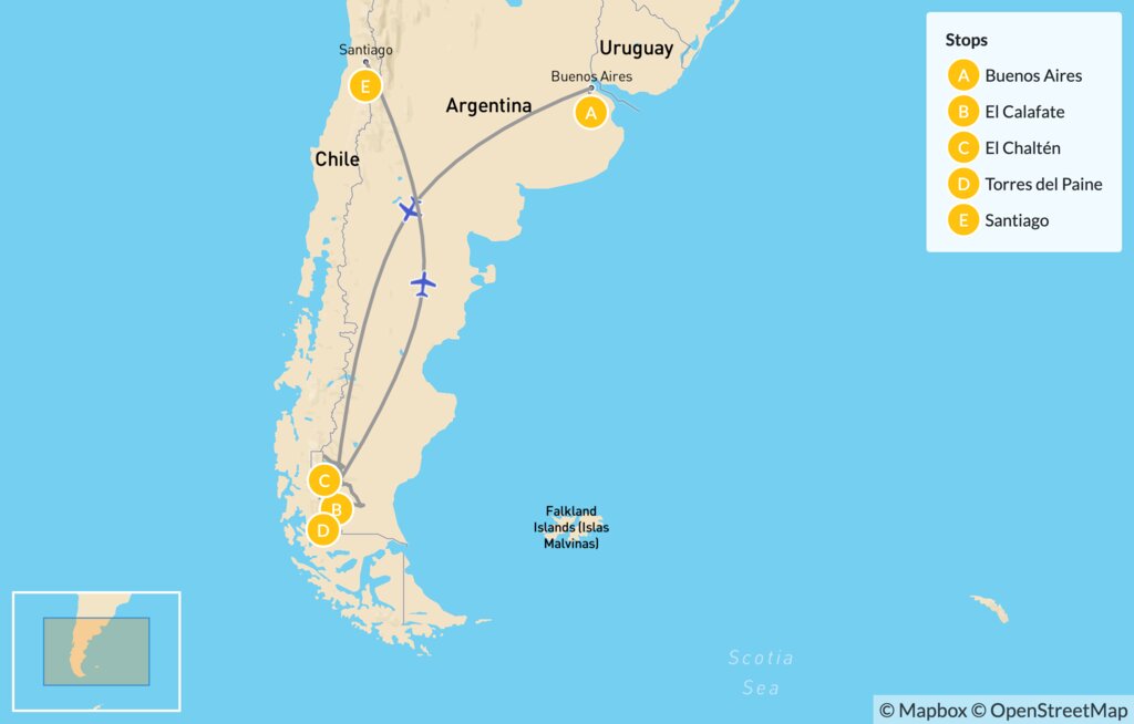 Map of Epic Patagonia Exploration: Glaciers, Mountains & National Parks – 12 Days