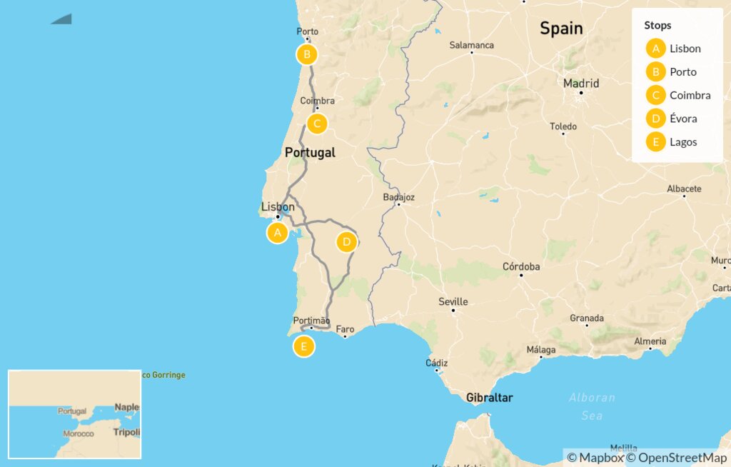 Map of Epic Portugal: Lisbon to the Algarve – 15 Days