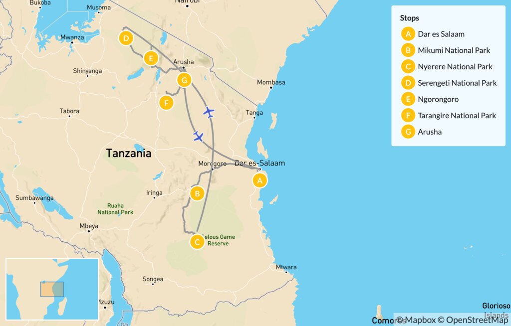 Map of Epic Tanzania Safari Highlights: Best of the National Parks – 14 Days