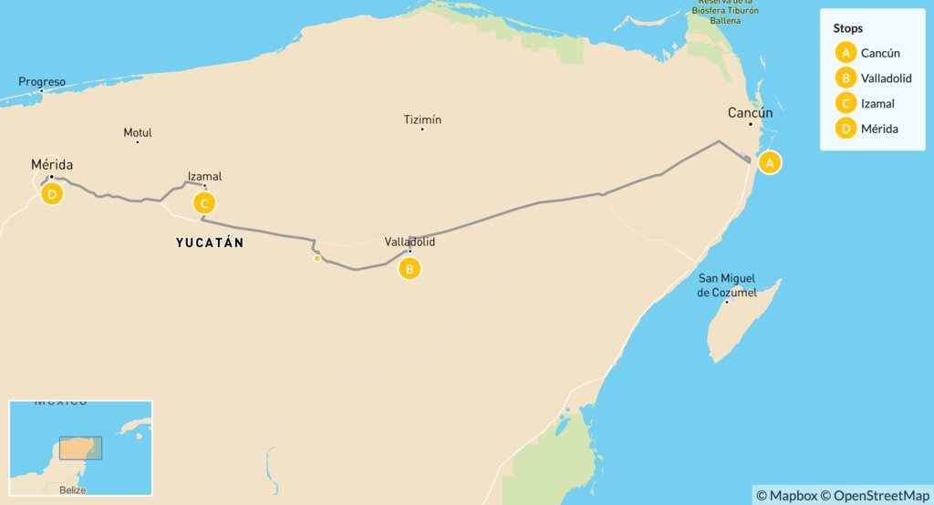 Map of Escape to Chichén Itzá & Mexico’s Yucatán Peninsula – 7 Days