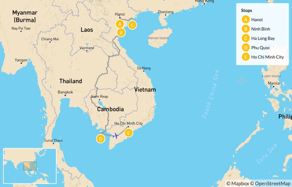 Map of Escape to Vietnam: Cities, Countryside & Islands – 9 Days