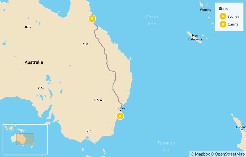 Map of Experience Australia: Sydney & Cairns – 8 Days