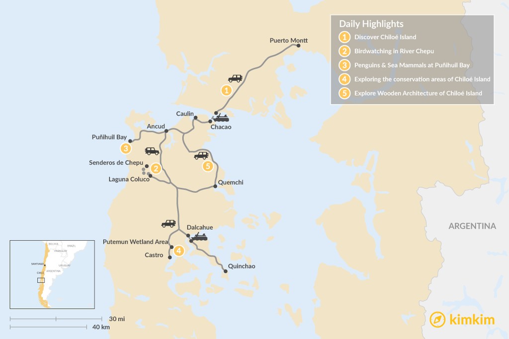 Map of Experience Chiloé: Wildlife & Birdwatching Tour – 8 Days
