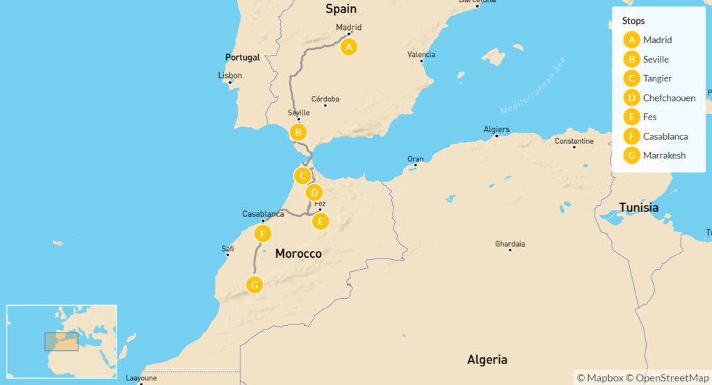 Map of Experience Culture & History in Spain & Morocco – 14 Days