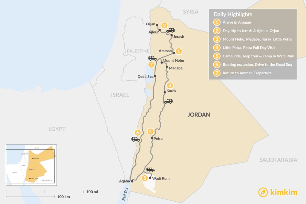 Map of Experience Jordan: Amman, Petra, & Wadi Rum – 7 Days