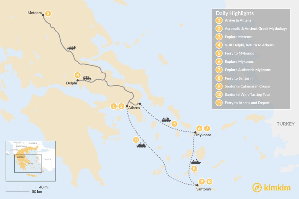 Map of Explore Athens, Meteora, Delphi, & the Cyclades – 11 Days