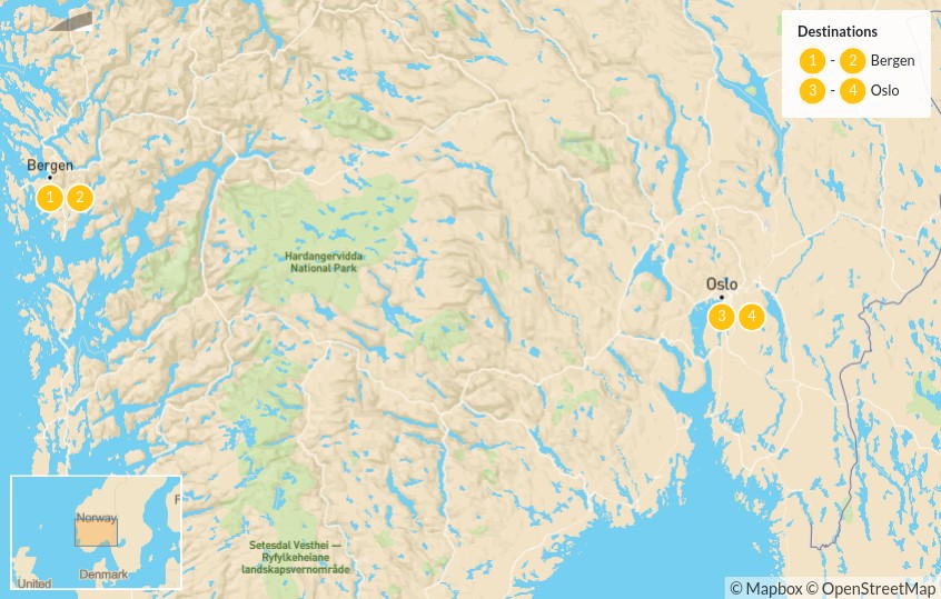 Map of Explore Bergen, Oslo & the Fjords – 5 Days