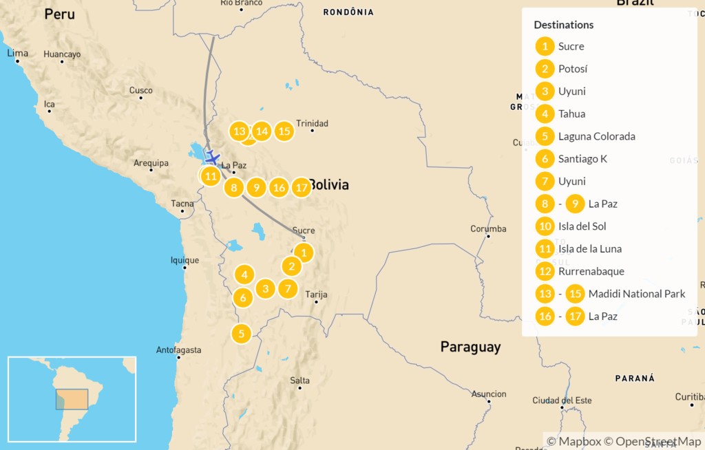 Map of Explore Bolivia: Andes to Amazon – 18 Days