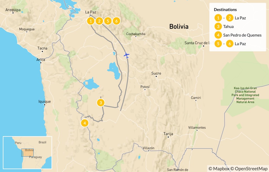Map of Explore Bolivia: La Paz & Great Uyuni Salt Flats – 7 Days