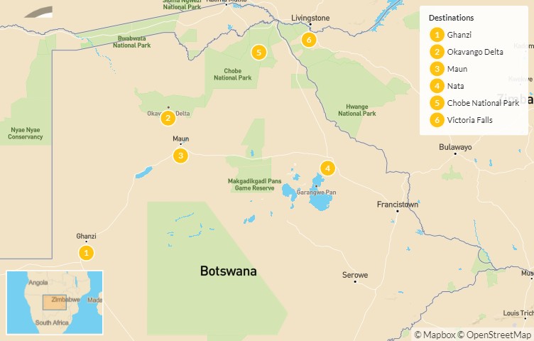 Map of Explore Botswana: Okavango Delta & Chobe Trail -7 Days