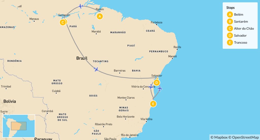 Your 16-day off-the-beaten-track adventure in Brazil comes to a close today. Spend your last few hours in Trancoso revisiting Quadrado Square for lunch or shopping in one of the boutiques. If you have time, you could pop over to the beach for some last-minute sun as well. When it’s time, meet your driver back at the hotel to transfer to the airport for a flight back to Salvador. From there, you can catch your flight home. Safe travels!