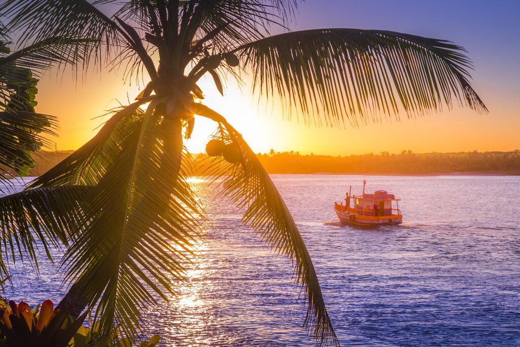 Spend another day in the sun, this time at Praia do Espelho, also known as “Mirror Beach,” since natural pools form when the tide is low, reflecting the blue sky. Take in the lush Atlantic rainforest and dramatic cliffs surrounding the beach before jumping into the water for a refreshing swim. If you want to unwind, visit Espelho Beach Club to lay on the plush loungers under the swaying palm trees and indulge in Bahian specialties. Stay at the beach until the sun starts to go down to watch the water transform into hues of orange, pink, and gold.