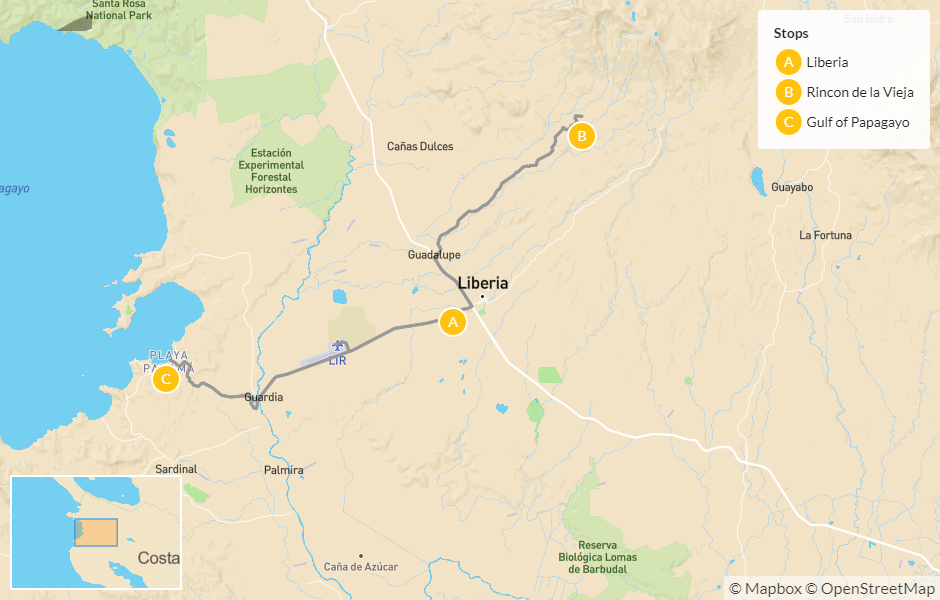 | Day 1 | Arrive in Liberia, Soak in the Río Negro Hot Springs | Rincón de la Vieja |