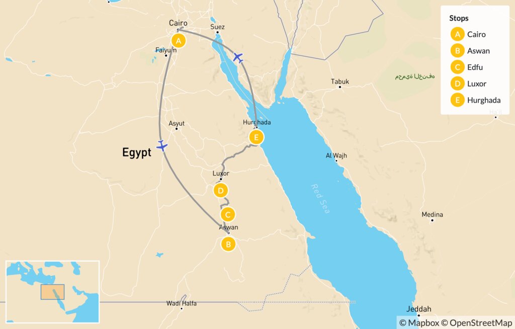 Map of Explore Egypt: Ancient Sites, Nile Cruise & Red Sea – 11 Days
