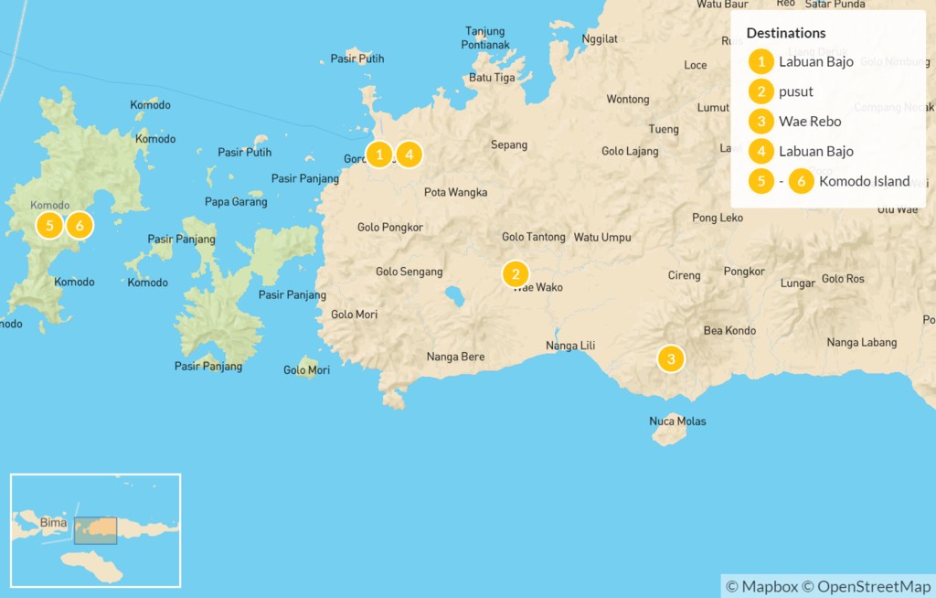 Map of Explore Flores & the Komodo Archipelago – 7 Days